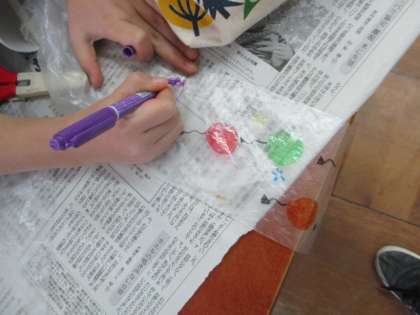 26日(木),図画工作の学習で,ビニール袋とストローを使って動く仕組みを作りました。