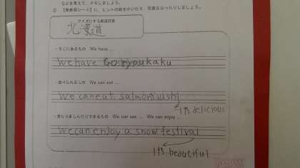 次の時間は,自分たちが住んでいる京都の町を紹介するためのスピーチを考えます。