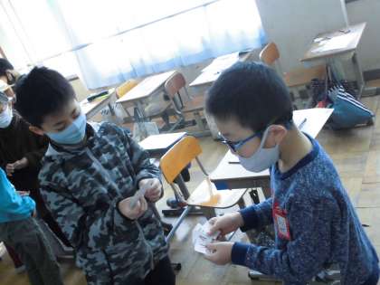 「Do you have ○○card?」という会話から,持っているアルファベットカードを揃えるという活動をしました。アルファベットを覚えているからこそできる活動になります。ミーガン先生にも積極的に話しかけにいけます。