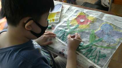 気になりながらも丁寧に色を塗っていました。