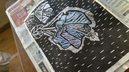 版を刷り終わったので,次は裏から色を付けています!