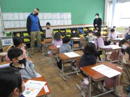ALTのアンディー先生とも,今日が最後の学習でした。「英語をたくさん勉強して,2年生でも頑張ってね!」と励ましてもらいました。子どもたちは,「アンディー先生と勉強できて楽しかったな。」「色の言い方や動物の言い方も,たくさん知れて嬉しかったよ。」と話していました。