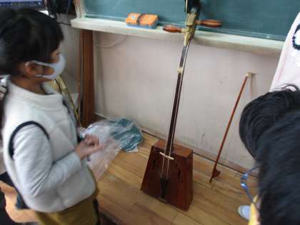 そして,なんと広沢小学校には,本物の馬頭琴があります。以前に保護者の方が寄付してくださったそうで,本物の馬頭琴が見られ,子ども達は「すごい!」と興奮気味でした。これからお話の世界に浸っていきたいと思います。