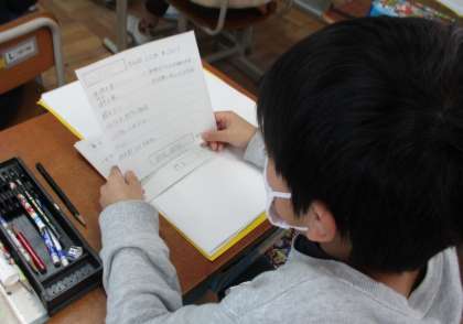 そして,そのカードをじっくり読んで,たくさんのほめ言葉にニッコリのみんなでした。「お礼を言おう!」と言っていたのですが,ちゃんと言えたかな?お忙しい中,ご協力いただき,本当にありがとうございました。