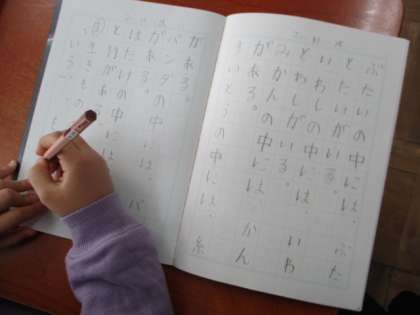 「ぶたいの中には,たいがある。」など,言葉の中に隠れているものを探して,「○○がある」「○○がいる」など,見つけた言葉をノートに書き出していきました。教科書に出てくる言葉以外にも,まだまだいろいろな言葉の中に,さらに短い言葉が隠れていそうです。
