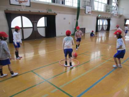 17日(水),体育の学習で体慣らしに鬼ごっこをしました。「三色おに」や「ボールおに」など,いろいろなゲームをして楽しみました。今朝は雪が降っていて寒かったですが,鬼ごっこをした後には「とっても暑いです!」と話している子どもたちでした。