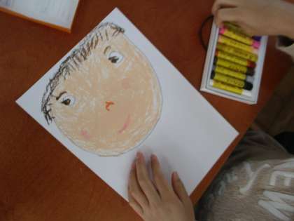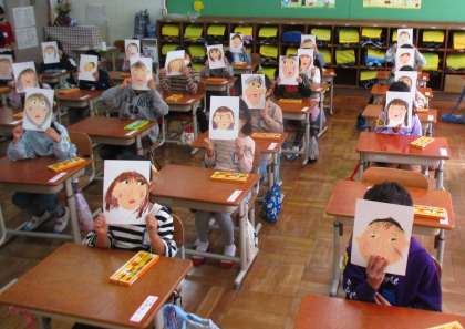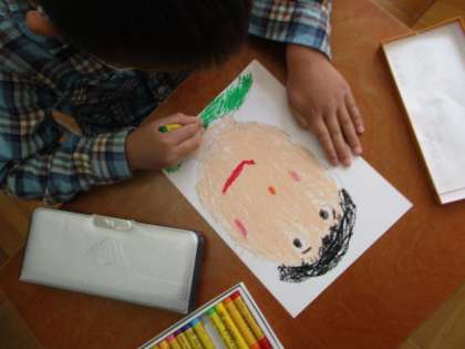 4月15日(木),図画工作科の学習でクレパスを使って自分の顔を描きました。顔の輪郭や,鼻や口などの一つ一つのパーツを手で触って確認しながら絵に表しました。
