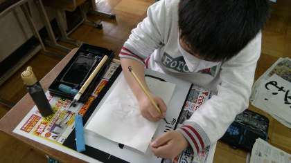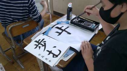 16日(金)書写の習字の学習では,「歩む」を書きました。とめ,はらい,はねを意識し,これまで習った学習内容を思い出しながら集中して書いていました。