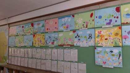 図工の時間に春の花や生き物を観察し,クレパスを使って描きました。春を感じる温かい作品に仕上がりました。