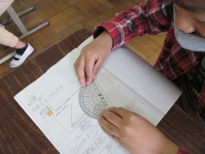 新しい単元に入りました。割りばしと折り紙で扇のようなものを作りました。これをつかって,角度について調べます。どんな時に分度器を使うのかな。