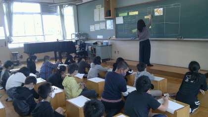 28日(水)音楽の学習では,「木星」の鑑賞をしました。曲からどんな感じがするのかなど気づいたことや想像したことを話し合いました。途中で雰囲気が変わるところにも注目し,どんなふうに変わったのか耳を澄ませて聞いているようでした。また,管楽器や弦楽器の音色の違いを感じながら鑑賞していました。