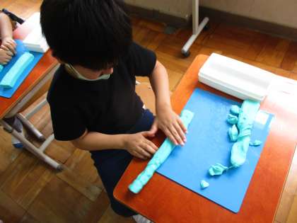 13日(木),図画工作の学習で,粘土を使っていろいろな形づくりを行いました。