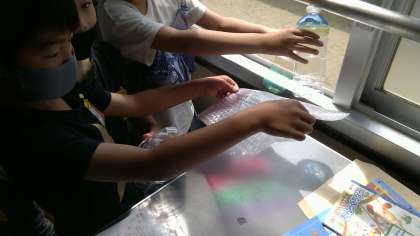 「光を通したらどんなふうに見えるかな?」とわくわくして作り進める子ども達。