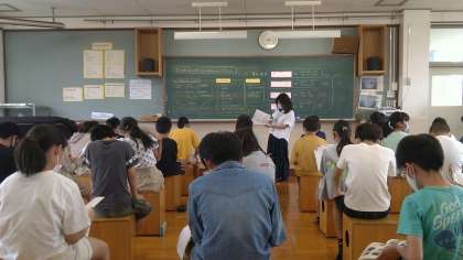 2日(水),音楽では,「ハンガリー舞曲 第5番」の鑑賞をしました。「どのような楽器が使われているのか」「どんな感じがするのか」交流しました。「暗い感じもするけれど,明るい部分もある!」「バイオリンが使われているな」とつぶやきながら,オーケストラの演奏を聞いていました。「ドイツの曲?」「ヨーロッパの雰囲気があるな」と日本の曲ではないことに気づき,ハンガリー舞曲が21番まであることにびっくりしていました。ブラームスがどうやってこの曲を作ったのか,おうちでも聞いてみてください。