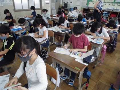 4日(金),外国語の授業では新しいユニットに入りました。今日は,自分のお気に入りの色を使って,虹をかきました。