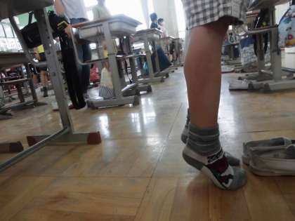 本日も音楽ともにつま先立ちが始まりました。どこにも触れず,一点集中です。外での運動量が少ない分,このような運動の積み重ねは大切です。「できない,やらない」ではなく,「できることは何か」を追求するよい機会となっています。