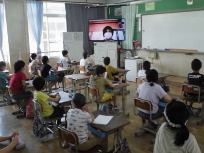 本日も朝会はリモートで行われました。「あっ校長先生や」という声が上がり,笑顔が見えることの大切さを感じたようでした。マイナスなことを思う前にプラスのことに考え方を変えるだけで気分も楽になることをお話ししてもらいました。