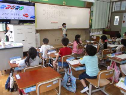 学習中,たくさんの子どもたちが手を挙げて自分から発表しています。前に出て発表する機会も増え,一人ひとりが頑張っています。