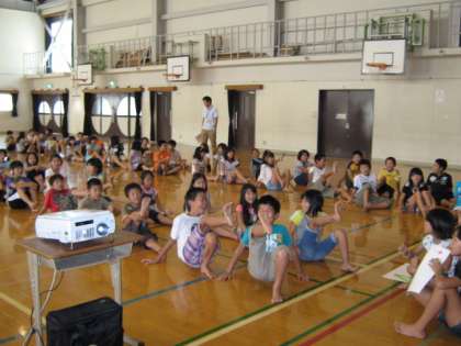 大きな掛け声に合わせ足を上にのばして、器用に指をひらいてじゃんけんをします。さすがは中学年、じゃんけんの掛け声も元気いっぱいにがんばりました。