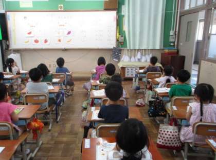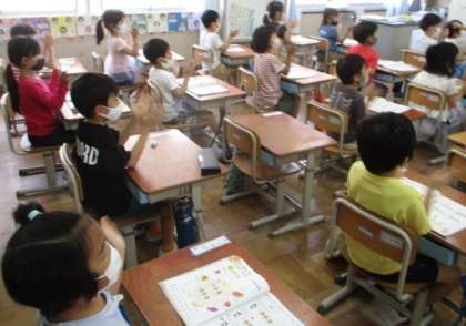 音楽の学習では,「たん・たん・たん・うん」や「た・た・た・た・たん・うん」に合わせて,言葉遊びを行いました。リズムに合う言葉をたくさん集めて,みんなで言うのがとても楽しかったようで,授業後にも,「こんな言葉,リズムに合いそう!」と手拍子を打ちながら言っている様子が見られました。