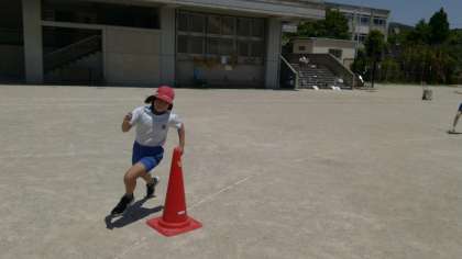 暑い中ですが,「リレー」の学習を頑張っています。全力で走って,タイムを縮めようと奮闘中。「スタートの合図を出そう!」「コーナーは,コーンの近くを走ろう!」など,グループで工夫を考えています。