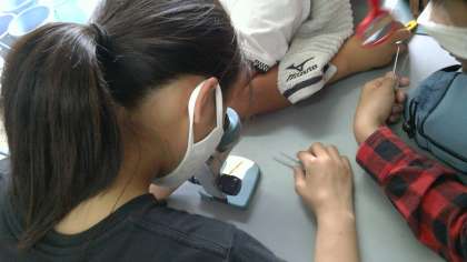 じっくり観察をしていると,いろいろなことに気づく子どもたち。水の通り道はたくさんあったようです。