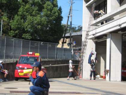 残暑厳しい中でしたが、消防署員の方の訓練を見たり
