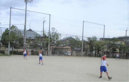 踊りの流れがわかったので,いよいよ運動場へ出て踊ってみました。運動場では音の聞こえ方が違います。周りの友だちと息をそろえることが難しくなります。そんな時こそ,合いの手や掛け声が必要性となってきます。