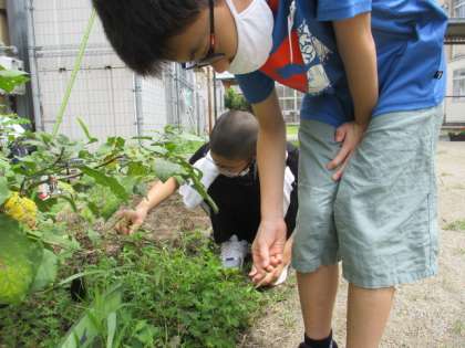 あおぞら植物村で次の野菜を育てるために,花壇の雑草を抜いていました。