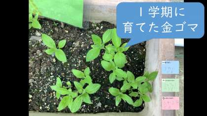 すると,1学期に金ゴマを育てていたプランターに,植物が芽を出していました。