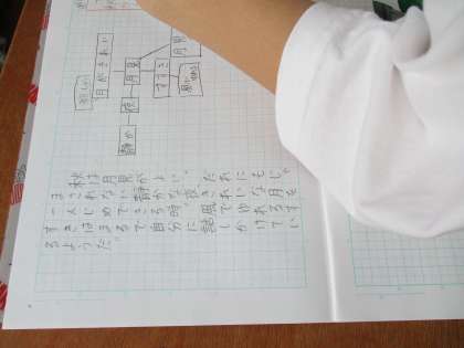 今日は,「秋らしいと感じること」を文章に表しました。子どもたちは,「秋は,ハロウィンが良い」「秋は,紅葉が良い」「秋はお月見が良い」など,秋の良さを思い思いに表現していました。