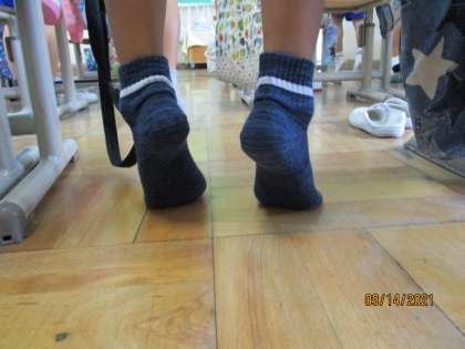 朝読書の後,毎朝2分間のつまさき立ちをします。先日の足型測定の振り返りでも,
