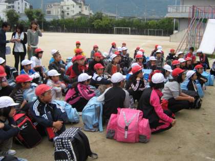 9月26日(月)〜30日(金)まで花脊山の家で、長期宿泊自然体験学習を行ないます。先ほど出発式を終え、元気に出発しました。