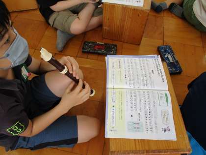 「ああ,ここが難しい。」などと言いながら頑張っていました。今は緊急事態宣言が出ており,学校では演奏ができないので,運指までしかできません。続きは,今日の宿題になっています。