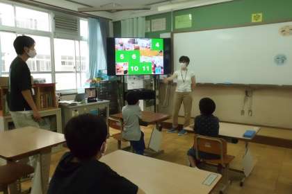 テレビには,楽しそうな「パネルクイズ」が・・・パネルをめくると,いろいろなクイズが出てくるのですが,それは,友だちのことをもっとよく知ったり,友だちと仲良くなるためにはどうすればよいのかを考えたりするためのクイズです。いつも仲良しのあおぞらの子ども達は,友だちのこともよく知っていて,すぐに答えが出てきます。楽しい学習を通して,さらに仲良しになりました。