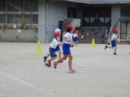 しっかり話を聞き,一緒に走るメンバーや順番など確認しました。「ディスタンス☆タイフーン」は,したことがない子も多かったのですが,チームで練習をするとイメージがつかめてきたようです…。