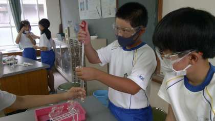 28日(水)理科では「水溶液の性質」の学習をしています。今日はいくつかの液体の性質を調べました。匂いはどうなのか?蒸発させるとどうなるのか?液体によって違うことが分かったようです。