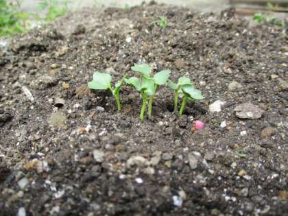 月曜日に撒いたダイコンが,もう芽を出しました!