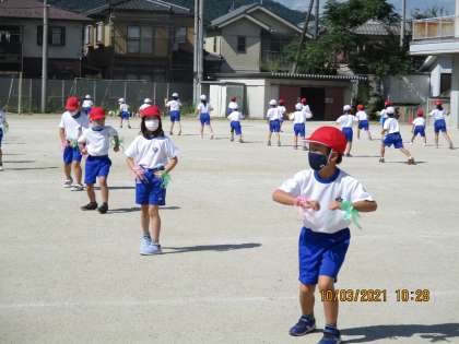 できるだけ先生の指示がなくても,自分たちで考えて行動してほしいと思っています。また,競技や演技に出ているときだけではなく,見ているときや待っているときも,いい態度で楽しみながら応援しようと話しました。