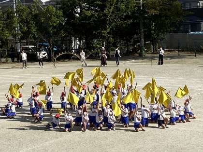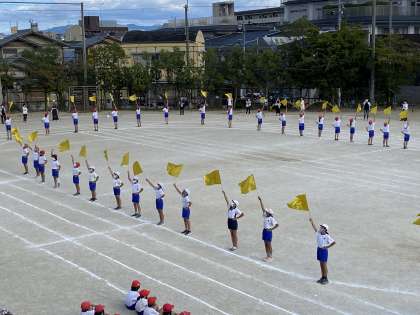6年生の演技は,5年生は生で,1〜4年生はZOOMのリアルタイム配信で見ました。演技終了と同時に校舎全体から拍手が聞こえてきました。とても素敵な時間になりました。思い出に残る運動会となりました。