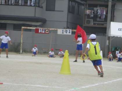 リレーは,とても白熱した戦いになりました。練習のときから,どのチームが1位になるのか予想できないほどの接戦でした,今回も最後までどのチームが勝つかわからない,緊迫する試合になりました。子どもたちも,応援に熱が入り,大変盛り上がっていました。