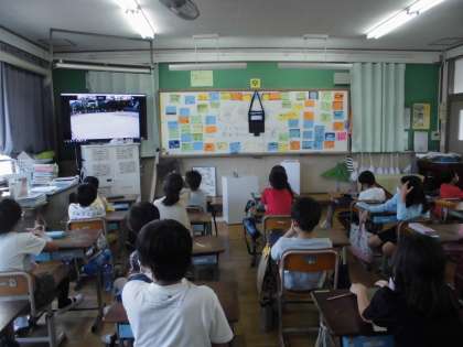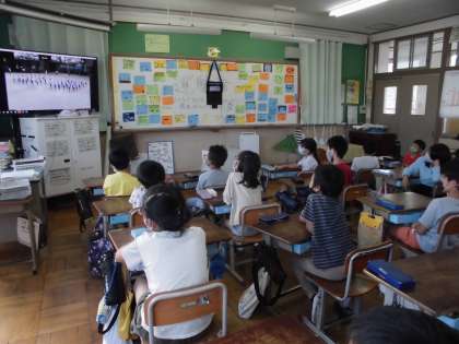 教室では,各学年の競技の観戦をしていました。「赤頑張れー!」「白頑張れー!」とZOOMでの観戦も一生懸命な3年生でした。