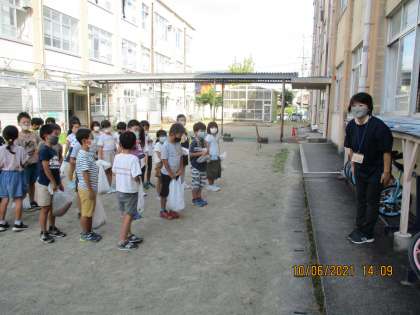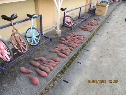 野菜の葉が病気になった時の対処方法や育て方を丁寧に教えていただいた管理用務員さんにも,お礼の言葉とサツマイモをプレゼントしました。