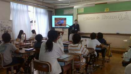外国語では,今日から新しく来られたALTのマスカット先生と学習をしました。マスカット先生からの自己紹介を見ながら,子ども達は「すごい〜!」「あ!知っている!」と興味津々の様子でした。これからも一緒に楽しく学習していきたいと思います。