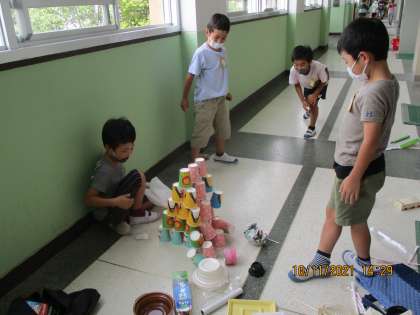 生活科では転がす遊びをしました。