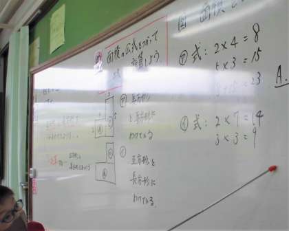 面積を求めるという課題を通して,様々な考え方があることに気づくことができました。考え方は違っても答えが同じという,算数の面白さも語っていました。