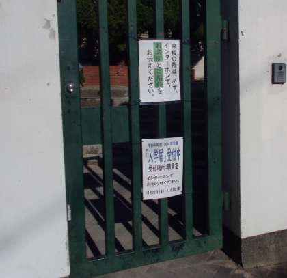 なお,授業中は学校の門が閉まっています。正門(東側)より,インターホンでお知らせください。職員室で受付をさせていただきます。