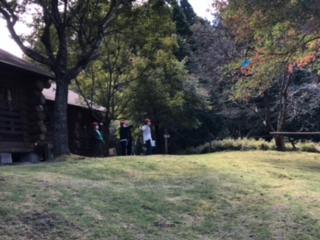 とってもよいお天気のもと,フライングディスクゴルフを楽しんでいます。