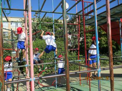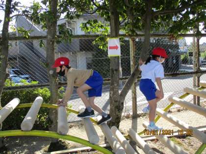 学習が進むにつれ,遊具遊びがどんどん好きになっている子どもたちでした。休み時間にも,遊具で遊んだり,竹馬や一輪車ができるようにチャレンジしたりする姿も見られます。ルールを守って安全に遊び,後片付けもしっかりしてくれています。