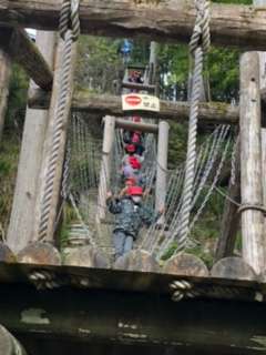 冒険の森に挑戦中の5年生。慎重に進んでいます。